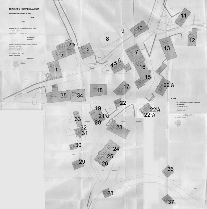 Die damals festgelegten Hausnummern wurden groß nachgezeichnet.