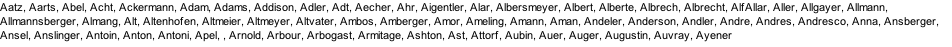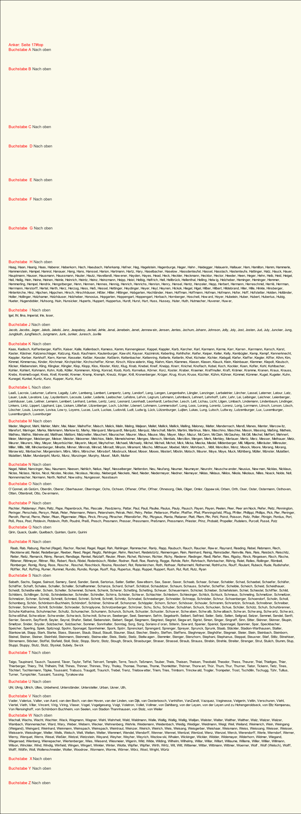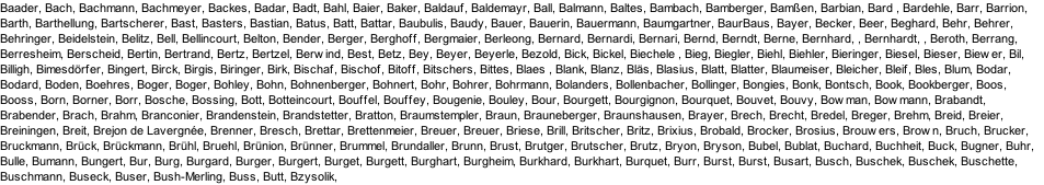 Zahler, Zahm, Zang, Zaph, Zapp, Zaum, Zehe, Zehler, Zeiger, Zeller, Zellers, Zender, Zengerle, Zenner, Zentes, Zerbach, Zerfass, Ziegler, Ziehl, Ziewers, Zimberger, Zimmer, Zimmermann, Zink, Zinke, Zins, Zintel, Zipchen, Zipp, Zirkelbach, Zöhler, Zomtisse, Zoske, zu Gleichen und Hatzfeld, Zumpf, Zurhose, Zwiener, Zwölfer,