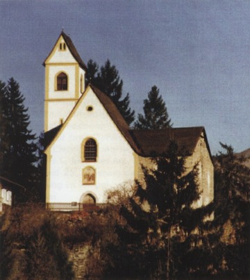 fest angebaut an die ehemalige, zweigeschossige Burgkirche,die das einzige Überbleibsel von der Burg Aufenstein ist.
