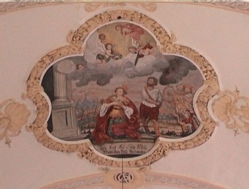 Das von Blasius Farbmacher gestiftete Medaillon über dem Hauptaltar