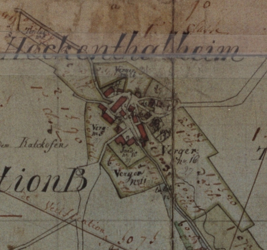 Die „Verger“ (Obstgärten) und „Jardin“ (Hausgarten) sind deutlich eingezeichnet